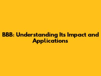 BBB: Understanding Its Impact And Applications