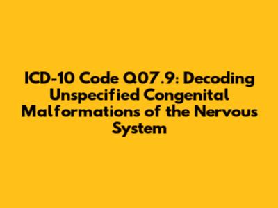 Alright, guys, let's dive into the world of ICD-10 codes, specifically focusing on Q07.9. This code is used to classify unspecified congenital malformations of the nervous system. Now, I know that sounds like a mouthful, but don't worry, we'll break it down into bite-sized pieces. Basically, when a doctor encounters a birth defect affecting the nervous system and can't pinpoint the exact type, they often use this code. Think of it as the "catch-all" for those tricky cases where the specific nature of the malformation is yet to be determined or is simply not clear from the available diagnostic information. This could be due to a variety of reasons, such as the limitations of current imaging techniques, the early stage of diagnosis, or the complexity of the malformation itself. The nervous system is incredibly intricate, and congenital malformations can manifest in countless ways, making precise identification a challenge. So, Q07.9 becomes a valuable tool in these situations, ensuring that the condition is documented and tracked even when the specifics remain elusive. It's important to remember that while Q07.9 provides a starting point, further investigation and more detailed coding are usually necessary as more information becomes available. The goal is always to achieve the most accurate and specific diagnosis possible to guide treatment and management strategies effectively. So, while Q07.9 serves its purpose in initial assessments, it's often a stepping stone toward a more refined understanding of the congenital malformation at hand. Understanding this code is crucial for healthcare professionals, researchers, and anyone involved in medical coding and billing. It helps ensure that medical records are accurate, and claims are processed correctly.