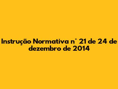 Let's break down Instrução Normativa n° 21, issued on December 24, 2014. This regulation provides critical guidelines and procedures, impacting various sectors and requiring careful attention. Understanding its key aspects is crucial for compliance and effective operation within the relevant industries. Let's dive in!