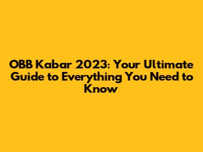 OBB Kabar 2023: Your Ultimate Guide