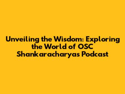 Unveiling The Wisdom: Exploring The World Of OSC Shankaracharyas Podcast